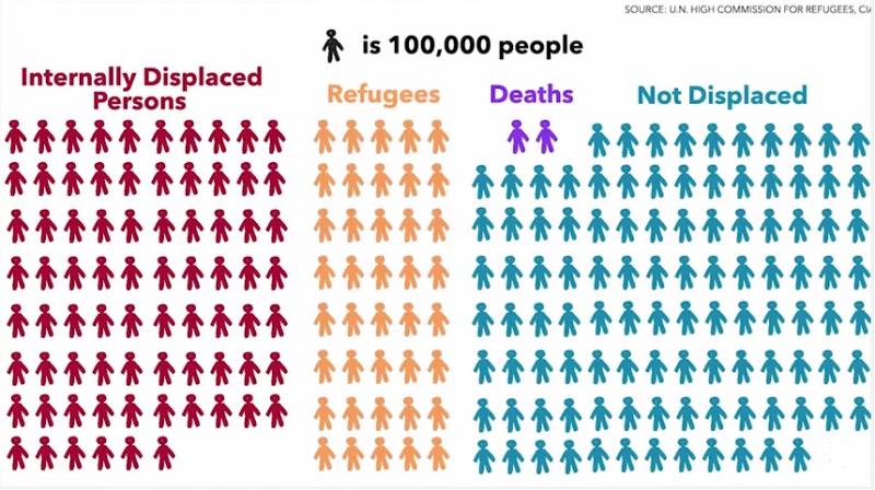 And because pictures help, back in 2011 before the war, Syria had a population of 22.4 million people. Here's what it looks like now.