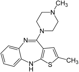 olanzapine: 2-Methyl-4-(4-methyl-1-piperazinyl)-10H-thieno[2,3-b][1,5]benzodiazepine