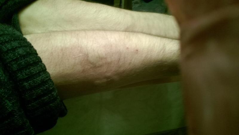 Ok now WTF is up with this shit!!! I forgot to untie and this vein likes to play slip and slide so I missed, but that went away already and these large lumps are not where I missed or anywhere I've shot up so that's not it...