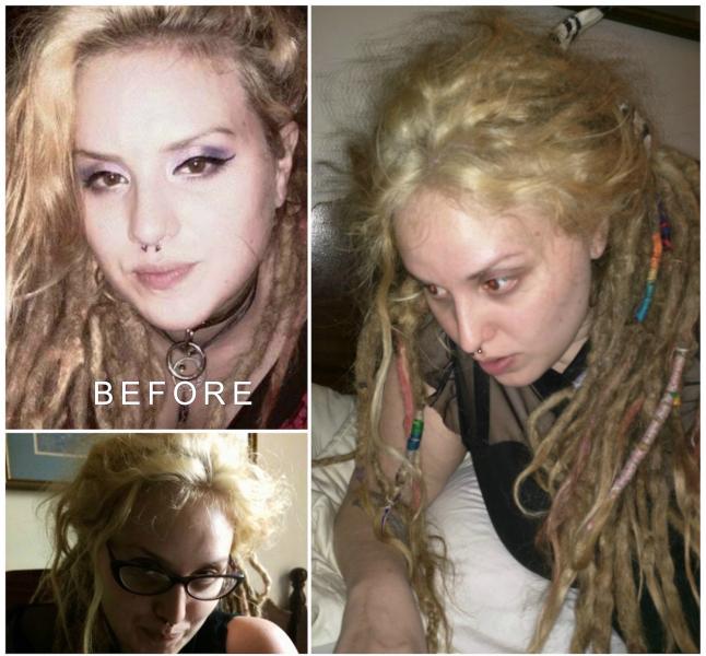 Just to clarify, I had been up for a straight month in the bad one. After switching back to opiates, here's a more recent pic from the beginning of this year (hubby always says heroin preserves youth):